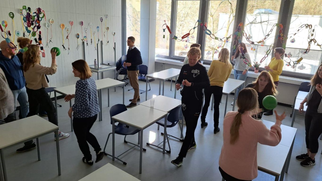 Neben Spielformaten, die sich im Klassenraum durchführen lassen, hatten die Workshopleiter auch Spiele in den Fluren der Schule