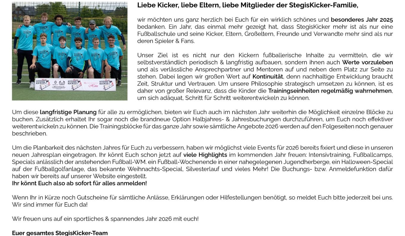 anmelden. Möglich ist dies über die Homepage, per Whatsapp an StegisKicker oder einfach über euren Vereinstrainer.